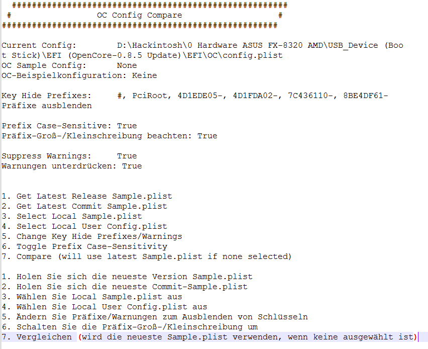 Verwendet habe ich OCAuxiliaryTools, ProperTree, OCConfigCompare alles in Windows bearbeitet.