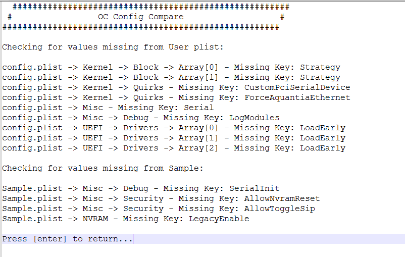 Und eine Meldung nach 7. Compare (will use latest Sample.plist if none selected)