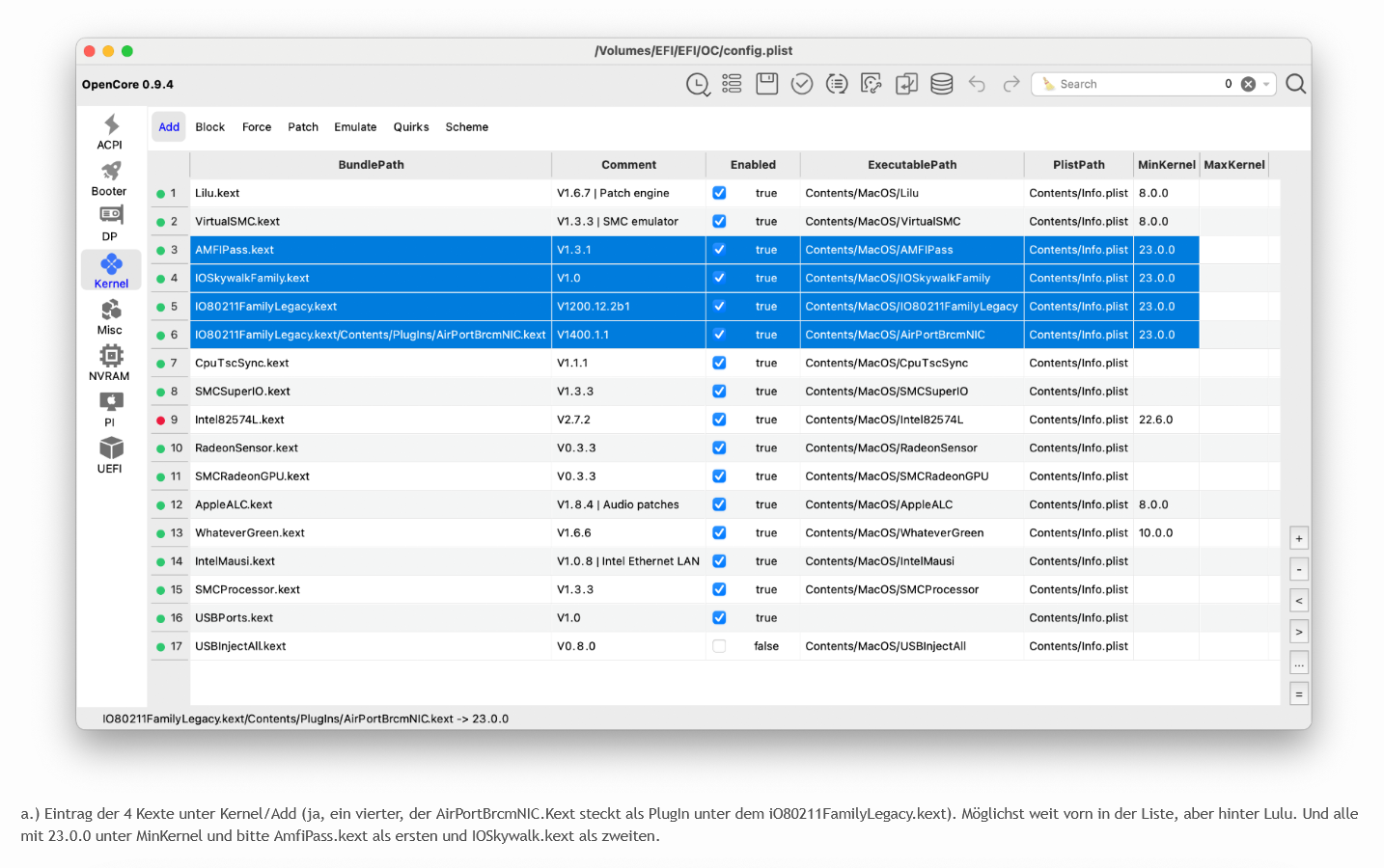 Wie muss man Maxi/Mini Kernel einfügen, um spezifischen Patches/Kexte nur für SMBIOS iMac19,1 somit für Sonoma, einzusetzen?