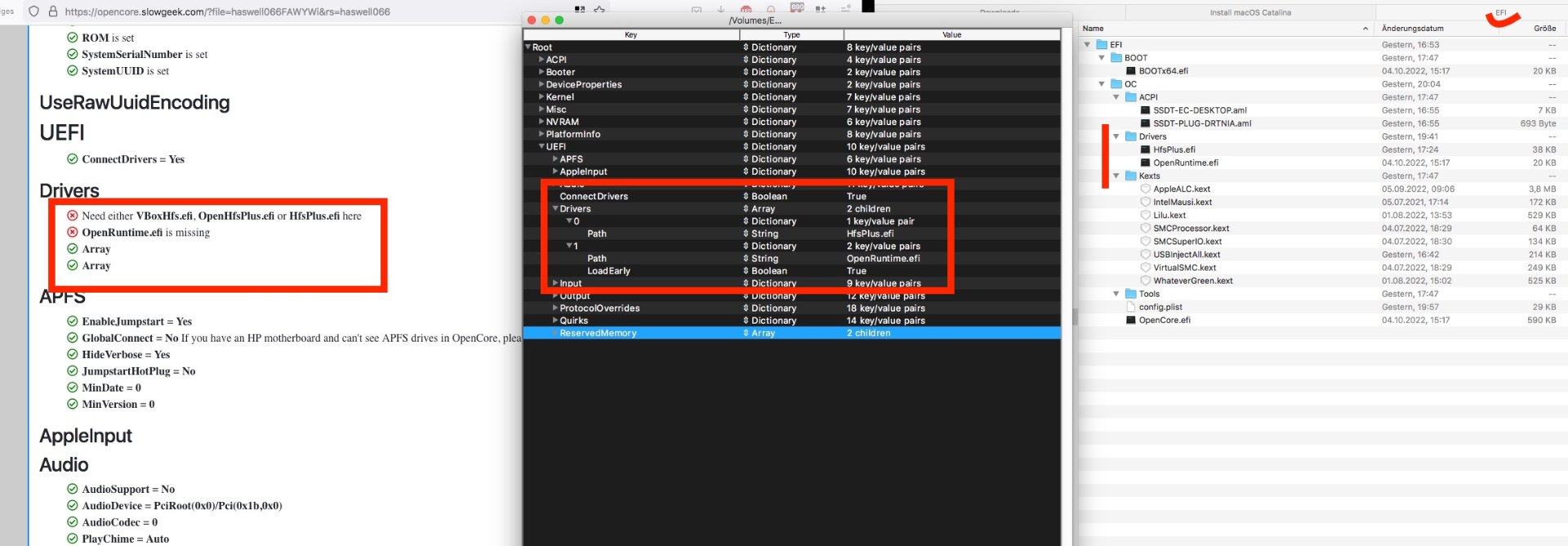 Dann habe ich in meiner config.plist die Änderungen bzgl. Sachen in den DeviceProperties geändert