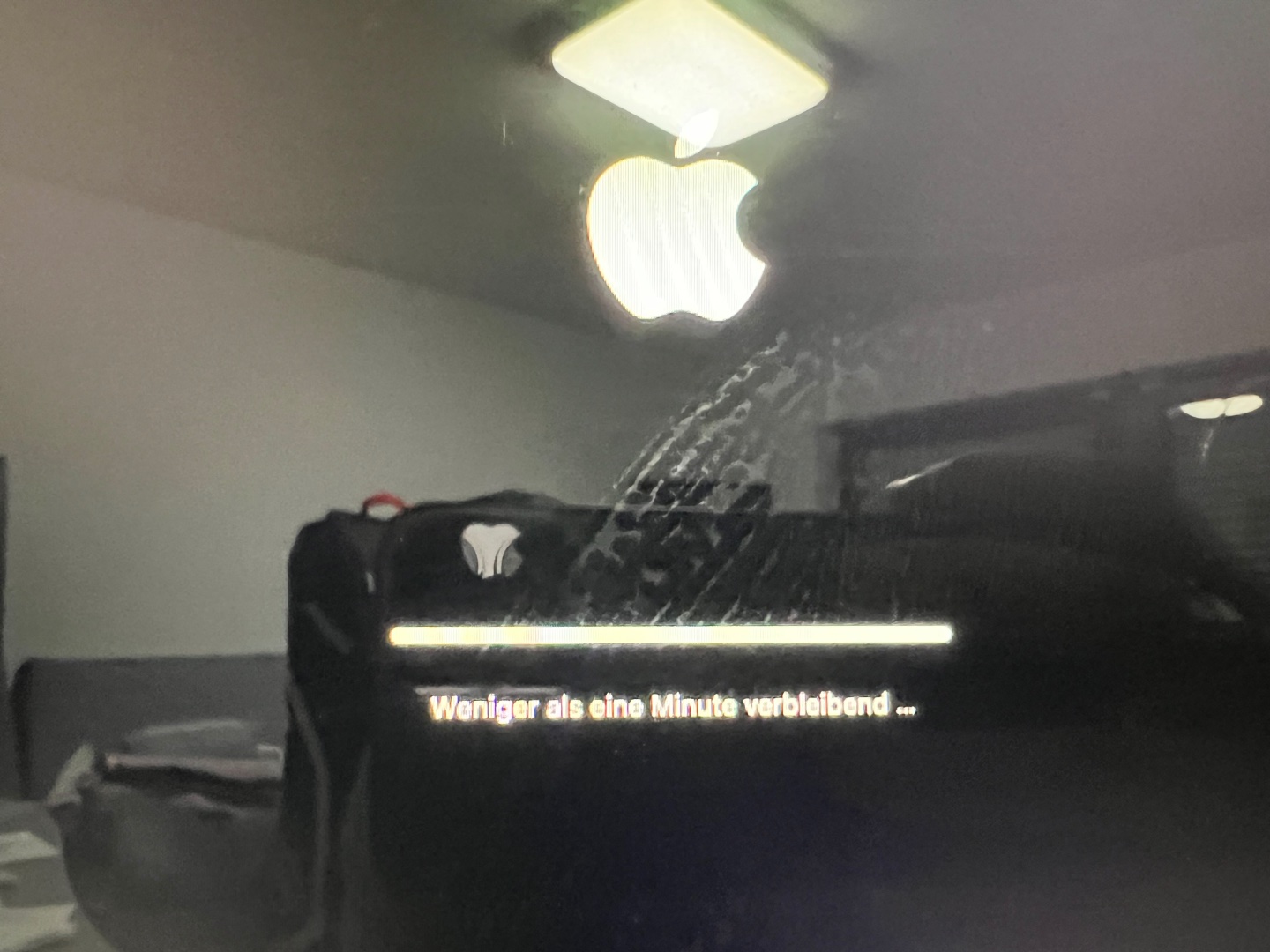 Hab dann mit Alt noch mal versucht und kam wieder in EFI Boot rein, dann wieder auf die Installation, aber leider bleibt er wie das letzte mal auf „Weniger als eine Minute“ hängen, auch die ganze Nacht.