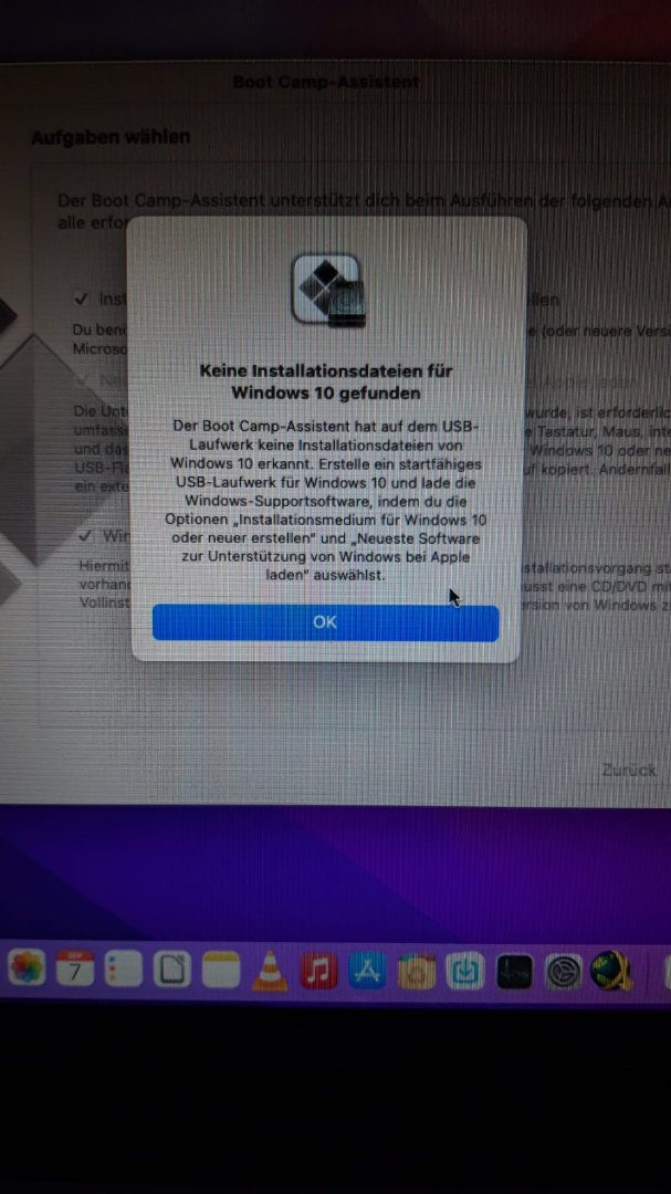 als ersten versuchte ich eine bootstick mit dem Bootcamp Asistenten zu erstellen das bricht aber immer mit der meldung ab " es wurde keine Windows support software auf dem Medium gefunden" danach kam dann die Meldung "der boostick konnte nicht erstellt werden" .