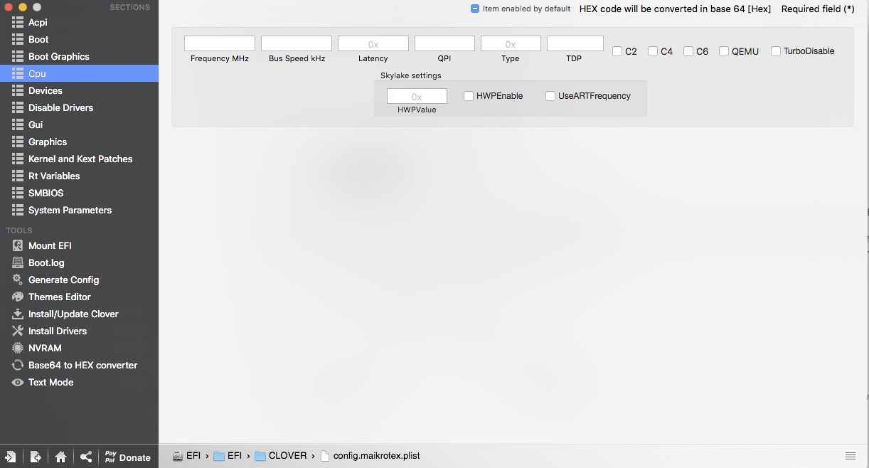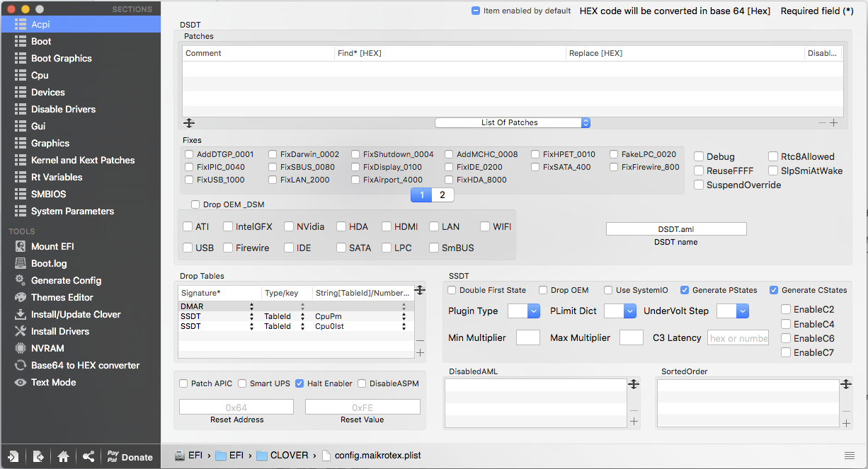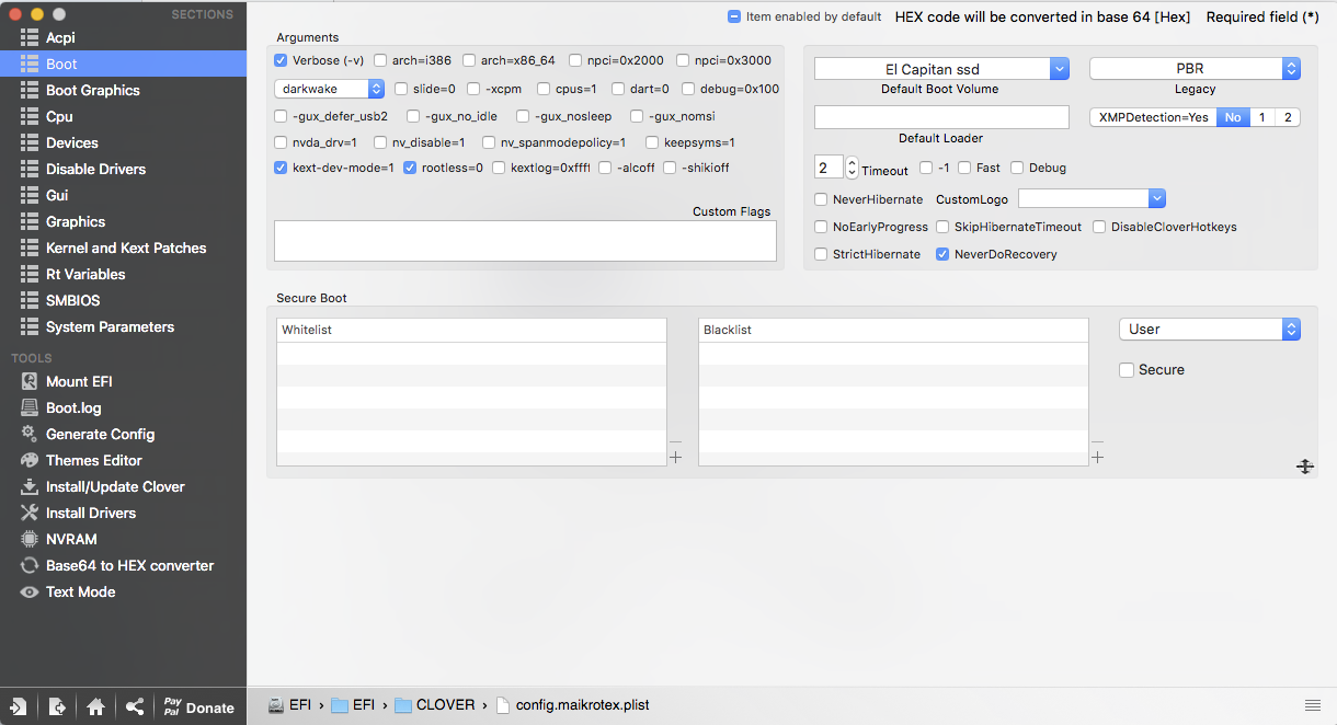 Soweit ich mich erinnere hatte ich dir maikrotex.plist mit dem clever configurator gespeichert. wenn ich aber beim boote wa sich mal ausprobiert habe die maikrotex anstatt die normale config.plist in den Optionen anwähle und boote macht er ein kernelpanik. mit der normalen config.plist läuft er normal hoch oder versteh ich da was falsch?