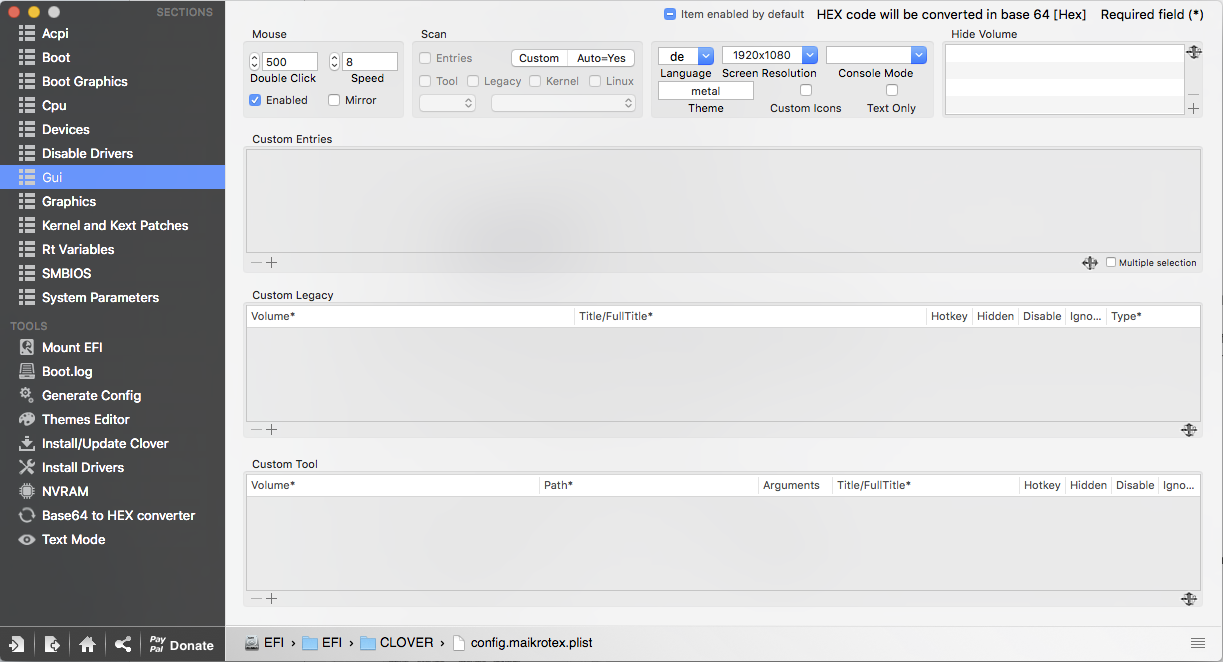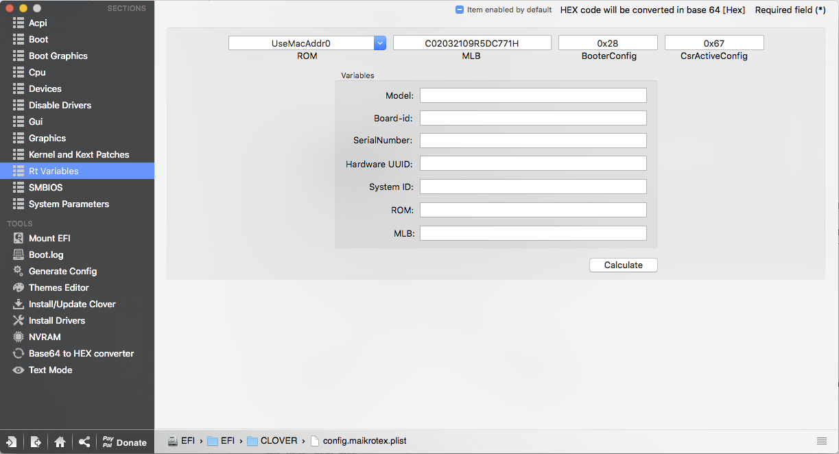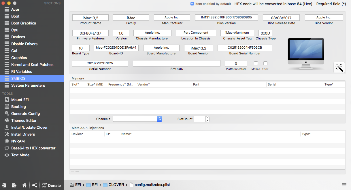 Sieht man warum am screenshot?die .plist die geht hat nix im smbios stehen also keinen mac definiert. Ist das ok? car active config stand auf 0x3 muss aber doch auf 0x67 oder?