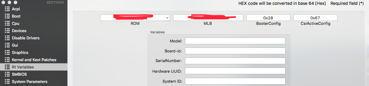 Damit Ihr auch direkt loslegen könnt habe ich Euch die Extensions, die ich nutze hier mal angehangen. Einfach das Paket essential.zip runterladen entpacken und in den Ordner /EFI/Clover/kexts/10.11/ auf den Stick kopieren. Ist das erledigt geht es mit dem anpassen der config.plist weiter. Viele von Euch haben vermutlich schon eine auf Euer T61 abgestimmte config.plist die als Basis dienen kann/sollte für weitere Anpassungen. Wenn Ihr schon eine config.plist besitzt kopiert diese bitte aus Eurem laufenden System und ersetzt damit die auf dem Stick vorhandene config.plist. Einmal ersetzt kann die nun auf dem Stick vorhandene Config.plist mit dem CloverConfigurator bearbeitet werden hierzu einfach einen Rechtsklick auf die config.plist ausführen und "öffnen mit Clover Configurator" auswählen. Einmal geöffnet führt unser erster Weg in den Reiter RT-Variables in dem wir sicherstellen, dass sowohl booterconfig als auch CsrActiveConfig korrekt gesetzt sind.