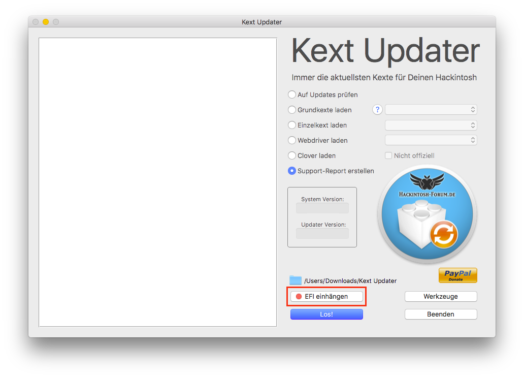 Dazu einfach den KextUpdater hier herunterladen, öffnen und unten einmal auf "EFI einhängen" oder "Mount EFI" klicken: