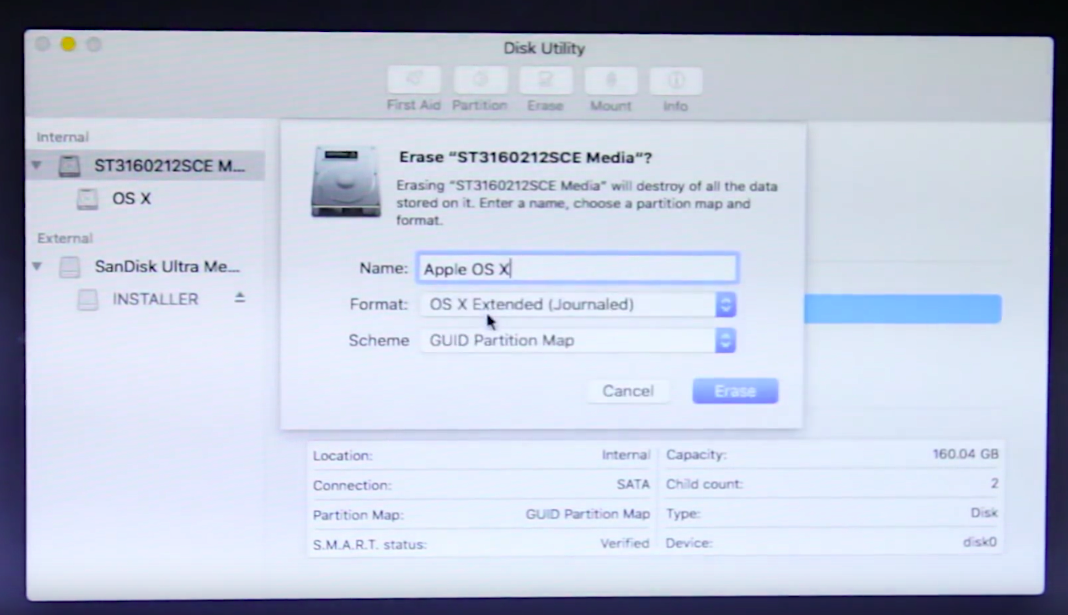 Das Festplattendienstprogramm wieder schließen und weiter mit der Installation. Dafür einfach auf "macOS Installieren" Doppelklicken. Jetzt markieren wir die soeben formatierte Festplatte, auf der installiert werden soll und bestätigen das ganze. macOS / OS X wird jetzt installiert!