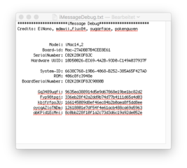 Wir werfen iMessageDebug (Download) an und sehen erstmal nach, was wir schon haben. Was hier auftaucht, sind meist die vorgegebenen Standart-Werte. Und es wäre doch peinlich, wenn der neue Rechner schon lange bei Apple angemeldet ist oder sogar gesperrt.
