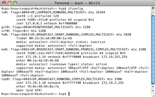 Als erstes öffnet ihr das Terminal und gebt ifconfig ein